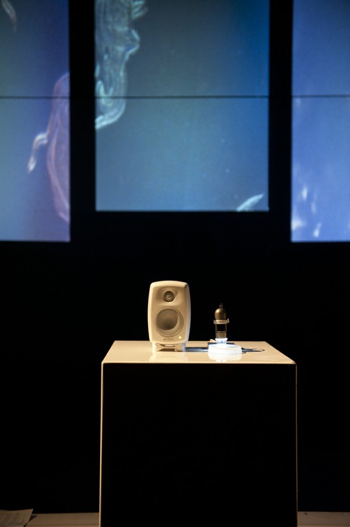 The final works of the winners of last year’s awards were exhibited upstairs at the Naturalis, Leiden’s Natural History Museum (on until 8th January ). I liked Matthijs Munnik’s ‘Microscopic Opera’, an audiovisual installation in which tiny nematodes perform an abstract opera under microscopes. Munnik developed a system to translate the movements of the c.elegans worm – a model organism often used in research labs – into sounds in real time. I found the “music” of the worms’ opera rather appealing and I enjoyed the simplicity of the concept and the effectiveness of its execution.