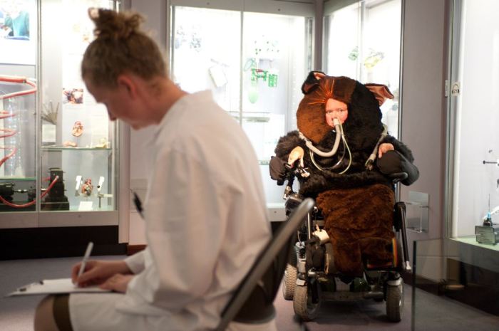 In the Labyrinth of Living Exhibits, artist Aaron Williamson curated four simultaneous, specially commissioned, site-specific performances, which infiltrated and responded to the collection, performed simultaneously by disabled artists Aaron Williamson, Sinéad O’Donnell, Brian Catling and Katherine Araniello.