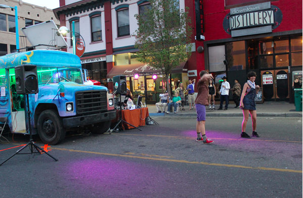 The Albuquerque section of the symposium culminated with a public block party on Central Avenue, better known as the historic Route 66, in downtown Albuquerque. Among the music, installations, street performances, and technological gizmos was a fantastically quirky balletic performance by a jumping, honking, revving gathering of low rider cars. Symphony 505 was a collaboration between the Down Low Car Club and artists Christopher Marianetti and Mary Margaret Moore.